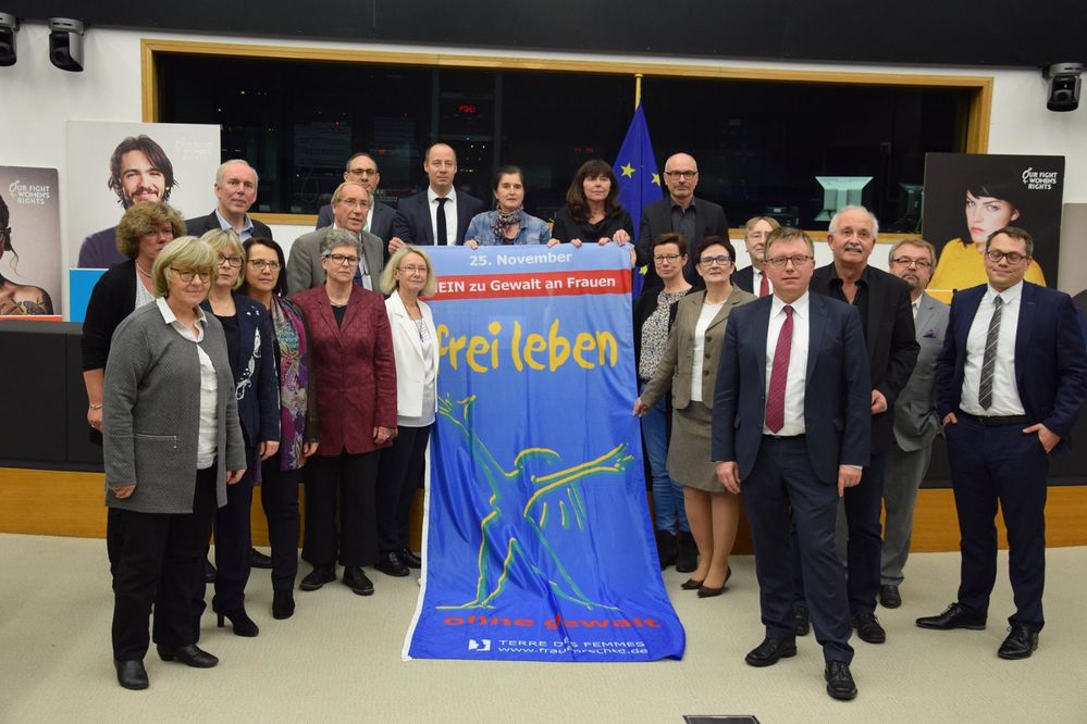 SPD-Europaabgeordneten zeigen gemeinsam Flagge am internationalen Tag gegen Gewalt an Frauen