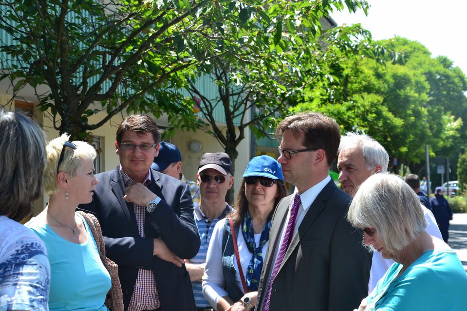 „Ohne die Mittel aus dem Programm „Soziale Stadt“ wären viele erfolgreiche Maßnahmen in der Vergangenheit so nicht umsetzbar gewesen“ machte der Vertreter der GBG mit Bezug auf die Sanierung und den teilweisen barrierearmen Ausbau der Sozialwohnungen am Karolinger Weg deutlich. Dass es aber vor allem auf die Initiative der Akteure vor Ort ankommt wurde beim Besuch des Bewohnertreffs offensichtlich. Hier lobten die Aktiven ausdrücklich auch die Unterstützung durch die GBG, das Quartiermanagement und die Stadt Mannheim. Gerade diese gute Zusammenarbeit, auch von haupt- und ehrenamtlicher Arbeit, macht die Hochstätt zu einem ausgezeichneten Beispiel gelungener Gemeinwesenarbeit. „Wir alle haben ein Interesse an funktionierenden, lebendigen Stadtteilen. Hier sorgen wir für gute Bildung, gute Arbeit und ein gutes solidarisches Miteinander. Das sind echte Zukunftsinvestitionen“, so Rebmann in Anerkennung der Leistung der vielen haupt- und ehrenamtlichen Helferinnen und Helfer. „Die Arbeit erfolgt letztlich vor Ort. Wir als Bundespolitiker können aber durch die richtigen Rahmenbedingungen eine bessere Unterstützung leisten“, so Florian Pronold. „Deshalb setzen wir uns in Berlin dafür ein, dass das Pro- gramm „Soziale Stadt“, das so viel Gutes angestoßen hat, verlässlich finanziert und ausgebaut wird. Für das Ziel einer sozialen Stadt muss nicht nur in Beton, sondern auch in sozialen Zusammenhalt investiert werden“, so der bayerische SPD- Landeschef abschließend.
