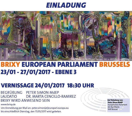 Noch 11 Tage bis zur Vernissage im Europäischen Parlament in Brüssel. Freue mich über die vielen Zusagen. Wer am 24. Januar um 18.30 Uhr noch dabei sein möchte: Einfach Mail bis zum 17.1. an peter.simon@ep.europa.eu