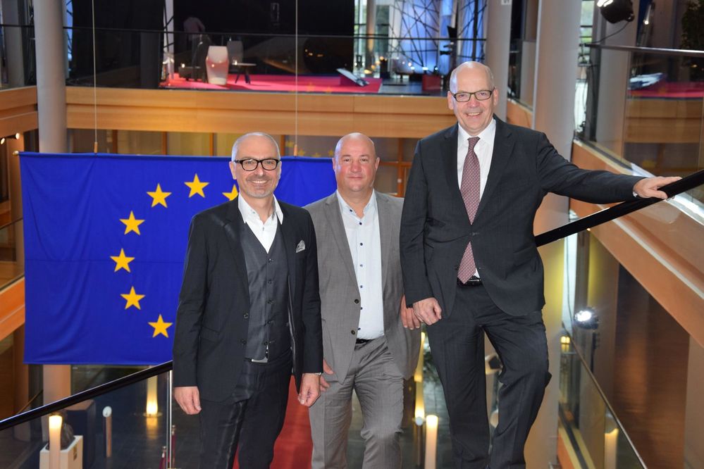 mit Michael Brecht, Konzernbetriebsratsvorsitzender von Daimler und Kurt Schäfer (Vice President Treasury) im Europaparlament