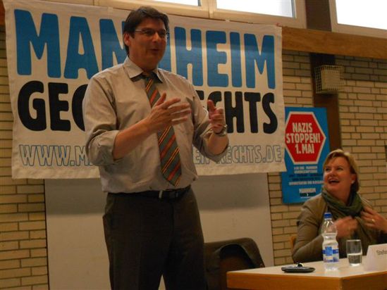 Das Bündnis „Mannheim gegen Rechts“ hatte in Zusammenarbeit mit der SPD und dem Mannheimer Bundestagsabgeordneten Stefan Rebmann zu einer Diskussion mit der Bundestagsabgeordneten Dr. Eva Högl, SPD-Obfrau im Untersuchungsausschuss NSU („Nationalsozialistischer Untergrund“), und einem Vertreter des Bündnisses „Mannheim gegen Rechts“ ins Neckarauer Volkshaus eingeladen. Wegen des großen Besucherandrangs musste die Veranstaltung von der Gaststätte in die Mehrzweckhalle verlegt werden.