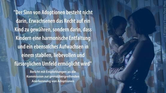 Wir fordern die EU-Kommission auf endlich Gesetzentwurf für automatische europaweite Anerkennung von Adoptionen vorzulegen. Es kann nicht sein, dass Familien mit Adoptivkindern beim Umzug noch immer Schwierigkeiten bei Einschulung, ärztlicher Versorgung etc. haben