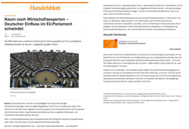 Kaum noch Wirtschaftsexperten - Deutscher Einfluss im EU-Parlament schwindet, in: Handelsblatt, 6. Dezember 2018