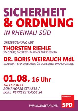 SPD Stadtrat Thorsten Riehle und der sicherheitspolitische Sprecher der Gemeinderatsfraktion und Landtagsabgeordneten Dr. Boris Weirauch greifen Probleme der Bürgerinnen und Bürger in Rheinau auf.