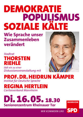 Über den Zusammenhang von Demokratie und Populismus, von Populismus und Sozialer Kälte und darüber, wie die Sprache des Populismus unser Zusammenleben ändert, diskutieren auf Einladung von Stadtrat Thorsten Riehle am