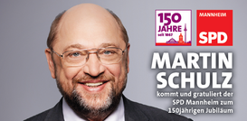 WICHTIGER HINWEIS: Wir freuen uns, dass der Festakt zum 150. Jubiläum der SPD Mannheim am 31. März mit Martin Schulz so großes Interesse hervorruft, dass wir ausgebucht sind. Wir können keine weiteren Anmeldungen mehr anehmen! Eine Tonübertragung in den Außenbereich ist geplant. Alle angemeldeten Personen bitten wir sich möglichst schon um 15.00 Uhr in der Rheingoldhalle zu sein, um den Einlass zügig sicherzustellen. Es wird Sitz- und Stehplätze geben. Wir bitten alle darum, darauf zu achten, dass vor allem ältere Personen einen Sitzplatz bekommen. Für Personen mit einem Handicap werden Plätze reserviert.