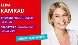Stadträtin Lena Kamrad bietet am Mittwoch, 21. September, von 18 bis 19 Uhr unter der Nummer 0621/ 293-2094 eine telefonische Sprechstunde an. Sie kümmert sich besonders um die Stadtteile Feudenheim und Wallstadt. Ihre Themen sind Kinder, Jugend und Bildung.
