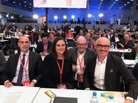 Die Delegierten aus Mannheim zu Beginn der Stunde 5 des Bonner SPD- Bundesparteitags: