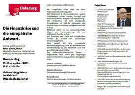 Veranstaltung mit Peter Simon: Die Finanzkrise und die europäische Antwort