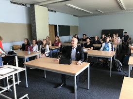 Die 11. Klasse des Gymnasiums in den Pfarrwiesen, Sindelfingen hat sich für meinen Besuch große Themen vorgenommen. Man spürt: Für die SchülerInnen ist Europa präsent und spannend.