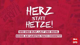 "Die baden-württembergischen SPD-Abgeordneten in Europa, Bund und Land und die gesamte SPD Baden-Württemberg stehen den Bürgerinnen und Bürgern von Chemnitz und allen Menschen solidarisch bei, die am 1.September 2018 ein Zeichen für Herz statt Hetze setzen. Die erneute Demonstration, zu der AfD und Pro Chemnitz für diesen Tag aufgerufen haben, instrumentalisiert das Opfer einer schrecklichen Straftat für ihre rechte Propaganda. Die abscheulichen von Gewaltbereitschaft, Rassismus und Hass getragenen Szenen der letzten Tage haben uns erschüttert. So einen Angriff auf den Rechtsstaat, solche menschenverachtenden Gewaltausbrüche darf es nicht geben. Nicht in Chemnitz, nicht anderswo. Wir unterstützen das breite Bündnis aus Vereinen, Stadtgesellschaft, Parteien und anderer gesellschaftlichen Gruppen, die sich gegen Hass und Hetze und für eine offene und vielfältige Gesellschaft einsetzen und zur Gegendemonstration Herz statt Hetze aufgerufen haben."