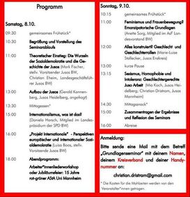 Der Juso-Kreisverband lädt recht herzlich ein für das Grundlagenseminar der Jusos Mannheim und Rhein-Neckar, das am 8. und 9. Oktober 2011 in den Räumen des AStA der Universität Mannheim stattfinden wird.