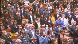Europaparlament gedenkt der Opfer der Terroranschläge von Paris.