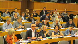 Erste Gruppensitzung der deutschen SPD-Europaabgeordneten nach der Sitzungspause. Thema u.a. EU-Flüchtlingspolitik.