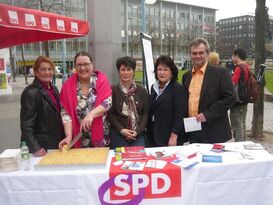 Mit ihrer Aktion „Ein gleiches Stück vom Kuchen“ war die Mannheimer Arbeitsgemeinschaft sozialdemokratischer Frauen für die Beseitigung der bestehenden Entgeltunterschiede zwischen Männern und Frauen. Am Freitag, 26. März, von 11.00 – 13.00 Uhr verteilte die AsF Kuchen auf dem Mannheimer Paradeplatz – für Männer gab es 23% weniger. Die AsF freute sich über zahlreiche Helfer/innen und Besucher/innen.