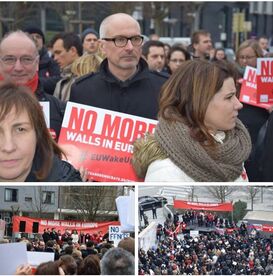 No more walls in Europe! Demonstration der Sozialdemokraten im Europaparlament vor Beginn des EU-Gipfels in Brüssel