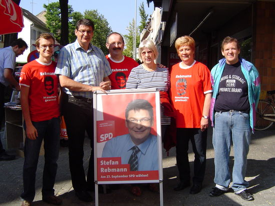 Bei sonnigem Wetter hatte der SPD-Ortsverein Neckarau in der Rheingoldstraße zum fünften Mal in Folge einen Informationsstand aufgeschlagen und für den SPD-Bundestagskandidaten Stefan Rebmann geworben. Stefan Rebmann, der am heutigen Samstag ein Info-Stand-Hopping durch seinen Wahlkreis machte, besuchte auch den Neckarauer Stand.