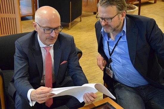 Meinungsaustausch mit Michael Hattermann von 1&1 in Brüssel u.a. zum Gesetzesvorschlag zur sogenannten Digital Tax, die gewährleisten soll, dass die Steuern dort bezahlt werden, wo die Dienstleistungen erbracht werden und nicht dort wo der Server steht